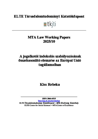 Kiss, Rebeka (2025) A jogalkotói indokolás szabályozásának összehasonlító elemzése az Európai Unió tagállamaiban. MTA LAW WORKING PAPERS, 2025 (10). pp. 1-38. ISSN 2064-4515
