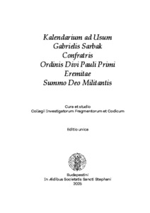 Monok, István (2025) Kölcsönzések a jakabhegyi remetelak könyvtárában, 1754–1774 között. In: Kalendarium ad Usum Gabrielis Sarbak Confratris Ordinis Divi Pauli Primi Eremitae Summo Deo Militantis. A Szent István Társulat kiadása, Budapest, pp. 155-157.
