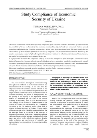 Kobielieva, Tetiana (2019) Study Compliance of Economic Security of Ukraine. THEORY METHODOLOGY PRACTICE: CLUB OF ECONOMICS IN MISKOLC, 15 (1). pp. 35-44. ISSN 1589-3413 (print); 2415-9883 (online)