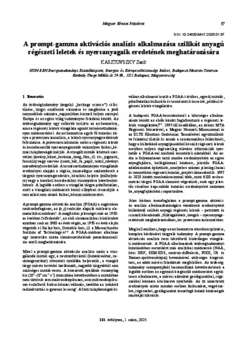 Kasztovszky, Zsolt (2025) A prompt-gamma aktivációs analízis alkalmazása szilikát anyagú régészeti leletek és nyersanyagaik eredetének meghatározására. MAGYAR KÉMIAI FOLYÓIRAT - KÉMIAI KÖZLEMÉNYEK (1997-), 131 (1). pp. 37-44. ISSN 1418-9933