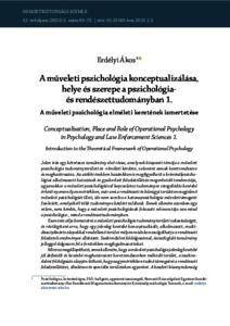 Jelen írás egy kétrészes tanulmány első része, amelynek központi témája a műveleti pszichológia tudományterületi és -elméleti kérdése, valamint annak keretrendszere és meghatározása. Az utóbbi években hazánkban is megfigyelhető a kriminálpszichológiai alkalmazott kutatások és gyakorlati feladatellátás megerősödő tendenciája, ugyanakkor a műveleti pszichológiával kapcsolatos tudományos vizsgálódás kevésbé érhető nyomon ilyen mértékben, már ami a rendészeti és bűnügyi területen megjelenő műveleti pszichológiát illeti, ide nem sorolva a katonapszichológia művelettámogató funkcióit, amelyekről több tudományos közlést találunk. Ennek ellenére azonban úgy vélem, nem kérdés, hogy a műveleti pszichológiának fokozott relevanciája van mind a pszichológia-, mind a rendészettudományban.Ezen írás célja bemutatni a műveleti pszichológia tudományterületi sokszínűségét, és rávilágítani arra, hogy egy jelenleg kevésbé konceptualizált, alkalmazott, multidiszciplináris alapokkal rendelkező terület milyen módokon szolgálhatja a rendészeti feladatok eredményes ellátását. Szakirodalmi feldolgozással, összefoglaló tanulmány jelleggel dolgozom fel a fentiekben megfogalmazottokat.Mint az megállapítható, annak ellenére, hogy a műveleti pszichológia jelenleg kevésbé jól definiált és kevésbé meghatározott keretrendszerben működő terület, a szakirodalmi feldolgozás alapján látható, hogy nagymértékben tudná támogatni a rendészeti feladatellátást, általános és speciális területeken egyaránt. A kezdeti bizonytalanság leküzdése érdekében célszerű lenne a kriminálpszichológia mellett a műveleti pszichológia konceptualizálására is figyelmet fordítani, amely kiterjedhetne a viszonyrendszerek és a tudományterületi elhelyezkedés tisztázására is.