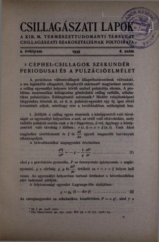 Detre, László (1939) Delta Cephei-csillagok szekundér periódusai és a pulzációelmélet. CSILLAGÁSZATI LAPOK, 2 (4). pp. 129-139.