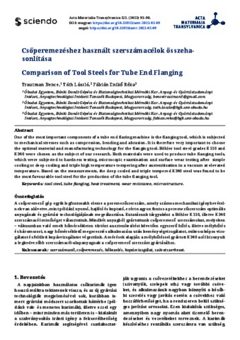 Trautman, Bence and Tóth, László and Fábián, Enikő Réka (2022) Csőperemezéshez használt szerszámacélok összehasonlítása. ACTA MATERIALIA TRANSYLVANICA (HU), 5 (2). pp. 93-98. ISSN 2601-1883