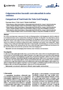 A csőperemező gép egyik legfontosabb eleme a peremezőszerszám, amely számos mechanikai igénybevételnek van alávetve, mint például nyomó, hajlító és koptató, ezért nagyon fontos a peremezőszerszám optimális anyagának és gyártási technológiájának megválasztása. Kutatásunk tárgyaként a Böhler K110, illetve K340 szerszámacél minőséget választottuk. Mindkét anyagból gyártottunk csőperemező szerszámokat, melyeken – vákuumban való emelt hőmérsékleten történt ausztenítesítést követően egyszerű hűtés, illetve mélyhűtés és háromszori, nagy hőmérsékletű megeresztés alkalmazása után keménységvizsgálatot, mikroszkópos vizsgálatot és felületi kopásvizsgálatot végeztünk. A mérések alapján a mélyhűtéssel gyártott K340 acél bizonyult a legkedvezőbb szerszámacél-alapanyagnak a csőperemező szerszám gyártásához.