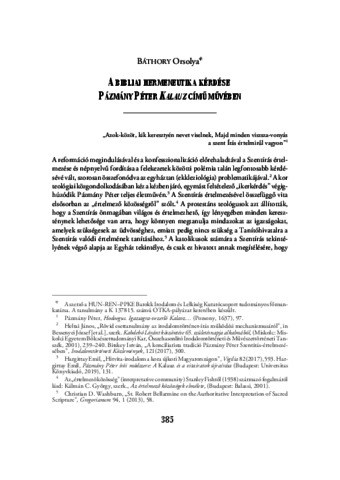Báthory, Orsolya (2024) A bibliai hermeneutika kérdése Pázmány Péter Kalauz című művében. In: Bibliai hermeneutika, avagy a bibliai szövegértelmezés változatai, 33. Szegedi Nemzetközi Biblikus Konferencia, Szeged, 2022. augusztus 23-25. Szegedi Nemzetközi Biblikus Konferencia Alapítvány, Szeged, pp. 385-398. ISBN ISBN 978–615–6646–04–0 (1. kötet) / ISBN 978–615–6646–05–7 (2. kötet)