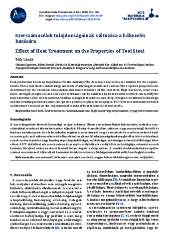 A szerszámgyártás kiemelt fontosságú az ipar számára. Olyan szerszámacélokat fejlesztettek, melyek a szerszámokkal szembeni követelményeket teljesítik. Kémiai összetételüket tekintve nagy mennyiségű ötvözőt és karbont tartalmaznak. Az elvárt tulajdonságokat a szerszámacél vegyi összetétele és a szövetszerkezet határozza meg. Az acél mikroszerkezetét hőkezeléssel az elérendő tulajdonságoknak megfelelően lehet módosítani, ennek eredményeként nagy keménységet, kopásállóságot, szilárdságot, szívósságot és korrózióállóságot lehet elérni. A 0 °C alá hűtés (sub zero treatment), az enyhe mélyhűtés és a mélyhűtés technológiája, valamint az ezek hatására létrejövő mikroszerkezet kiemelt helyet kapott a dolgozatban. A munka irodalomkutatásra épülve számos szerszámacél hőkezelését bemutató kísérleti eredmény feldolgozásával készült összefoglaló munka.