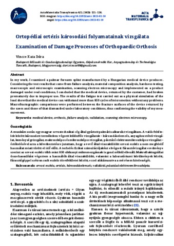 Vincze, Kata Dóra (2023) Ortopédiai ortézis károsodási folyamatainak vizsgálata. ACTA MATERIALIA TRANSYLVANICA (HU), 6 (2). pp. 121-126. ISSN 2601-1883