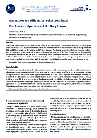 Barabássy, Miklós (2023) A Szent Korona süllyesztett rekeszzománcai. ACTA MATERIALIA TRANSYLVANICA (HU), 6 (2). pp. 65-73. ISSN 2601-1883