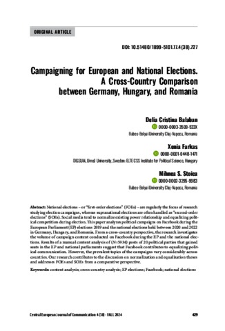 Delia, Cristina Balaban and Farkas, Xénia and Mihnea, S. Stoica (2025) Campaigning for European and National Elections. A Cross-Country Comparison between Germany, Hungary, and Romania. CENTRAL EUROPEAN JOURNAL OF COMMUNICATION, 4 (38). pp. 429-446. ISSN 1899-5101