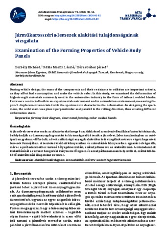 Borbély, Richárd and Kölüs, Martin László and Béres, Gábor József (2024) Járműkarosszéria-lemezek alakítási tulajdonságainak vizsgálata. ACTA MATERIALIA TRANSYLVANICA (HU), 7 (1). pp. 8-13. ISSN 2601-1883