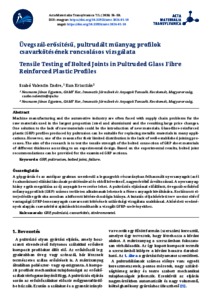 A gépgyártás és az autóipar gyakran szembesül a legnagyobb részarányban felhasznált nyersanyagok (acél és alumínium) ellátási láncának problémáival és ebből következő, nagymértékű árváltozással. A nyersanyaghiány egyik megoldása az új anyagok bevezetése lehet. A pultrúziós eljárással előállított, üvegszál-erősítésű műanyag profilok (GRP) számos területen alkalmasak lehetnek a fémes anyagok kiváltására. Korlátozott elterjedésük egyik oka azonban a kiforrott kötéstechnológia hiánya. A kutatás célja kísérleti terv szerint eltérő vastagságú GFRP-lemezanyagok csavarozott kötésének szilárdsági vizsgálata szakítással. A kísérleti eredmények alapján csavarkötési ajánlások biztosíthatók a vizsgált GFRP-szelvényekhez.