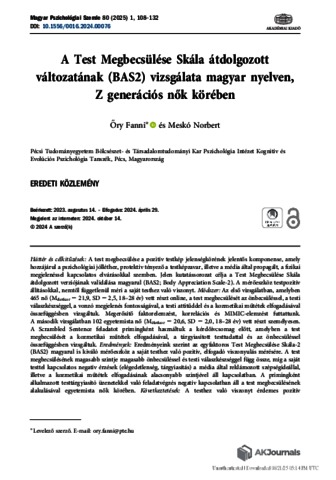 Őry, Fanni and Meskó, Norbert (2025) A Test Megbecsülése Skála átdolgozott változatának (BAS2) vizsgálata magyar nyelven, Z generációs nők körében. MAGYAR PSZICHOLÓGIAI SZEMLE, 80 (1). pp. 108-132. ISSN 0025-0279