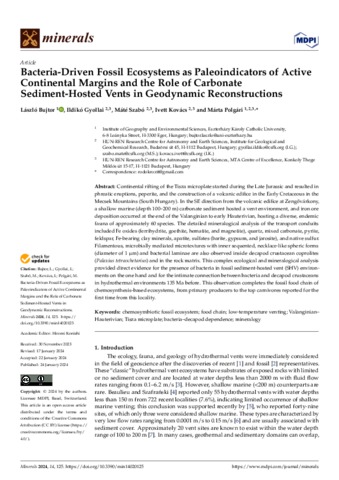 Bujtor, László and Gyollai, Ildikó and Szabó, Máté Zoltán and Kovács, Ivett and Polgári, Márta Piroska (2024) Bacteria-Driven Fossil Ecosystems as Paleoindicators of Active Continental Margins and the Role of Carbonate Sediment-Hosted Vents in Geodynamic Reconstructions. MINERALS, 14 (2). No.-125. ISSN 2075-163X