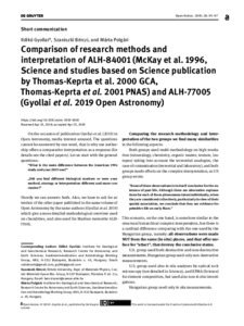 Gyollai, Ildikó and Bérczi, Szaniszló and Polgári, Márta Piroska (2019) Comparison of research methods and interpretation of ALH-84001 (McKay et al. 1996, Science and studies based on Science publication by Thomas-Keprta et al. 2000 GCA, Thomas-Keprta et al. 2001 PNAS) and ALH-77005 (Gyollai et al. 2019 Open Astronomy). OPEN ASTRONOMY, 28 (1). pp. 95-97. ISSN 2543-6376