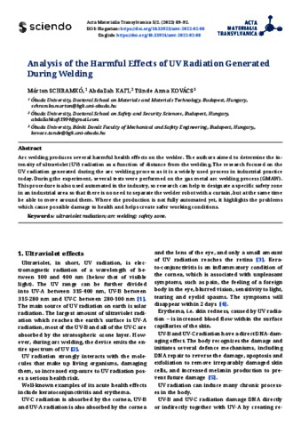 Schramkó, Márton and Kafi, Abdallah and Kovács, Tünde Anna (2022) Analysis of the Harmful Effects of UV Radiation Generated During Welding. ACTA MATERIALIA TRANSYLVANICA (EN), 5 (2). pp. 89-92. ISSN 2601-8799