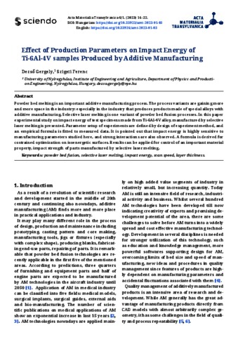 Dezső, Gergely and Szigeti, Ferenc (2023) Effect of Production Parameters on Impact Energy of Ti-6Al-4V samples Produced by Additive Manufacturing. ACTA MATERIALIA TRANSYLVANICA (EN), 6 (1). pp. 14-22. ISSN 2601-8799