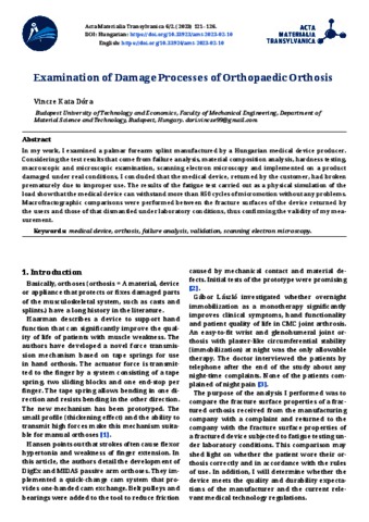 Vincze, Kata Dóra (2023) Examination of Damage Processes of Orthopaedic Orthosis. ACTA MATERIALIA TRANSYLVANICA (EN), 6 (2). pp. 121-126. ISSN 2601-8799