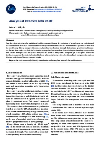 Fekete, L. Mátyás (2023) Analysis of Concrete with Chaff. ACTA MATERIALIA TRANSYLVANICA (EN), 6 (2). pp. 90-94. ISSN 2601-8799
