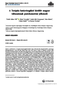 Török, Gábor Pál and Bóné, Veronika and Szabó-Jáki, Zsuzsanna and Kiss, Márta and Csikai, Enikő and Karner, Orsolya (2025) A Terápiás hatásvizsgálati kérdőív magyar változatának pszichometriai jellemzői = Psychometric characteristics of the Hungarian version of the Outcome Questionnaire 45.2. MAGYAR PSZICHOLÓGIAI SZEMLE, 80 (2). pp. 258-274. ISSN 0025-0279