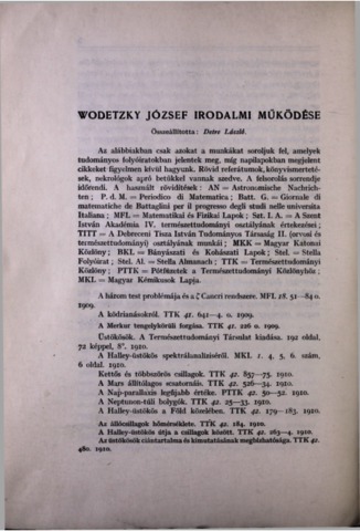 Detre, László (1942) Wodetzky József irodalmi működése. CSILLAGÁSZATI LAPOK, 5 (1-2). pp. 6-11.