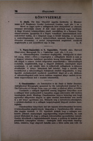 Detre, László (1939) Könyvszemle : S. Chandrasekhar: An Introduction to the Study of Stellar Structure. CSILLAGÁSZATI LAPOK, 2 (2). pp. 78-79.