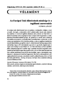 Herman, János (2024) Az Európai Unió döntéseinek minősége és a tagállami szuverenitás = The quality of EU decisions and national sovereignty. KÜLGAZDASÁG, 68 (9-10). pp. 70-85. ISSN 0324-4202 (print), 2732-0235 (online)