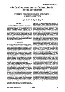 Apáti, Sándor and Hegedűs, György (2025) Vágóerő modellezése fűrészelésnél – rövid áttekintés. GÉP, 76 (1). pp. 5-8. ISSN 0016-8572