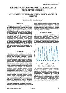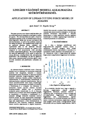 Apáti, Sándor and Hegedűs, György (2025) Lineáris vágóerő modell alkalmazása szúrófűrészeknél. GÉP, 76 (1). pp. 9-12. ISSN 0016-8572