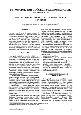 Bányai, Kristóf and Vadászné Bognár, Gabriella (2024) Bevonatok tribológiai tulajdonságainak vizsgálata. GÉP, 3-4. pp. 13-18. ISSN 0016-8572