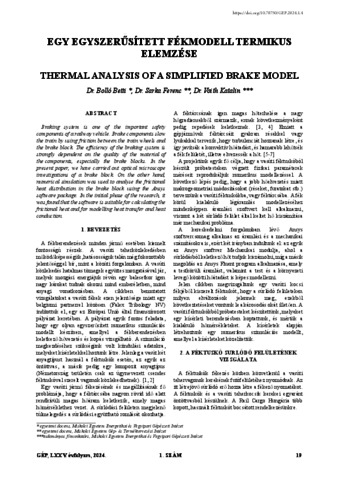 Bolló, Betti and Sarka, Ferenc and Voith, Katalin (2024) Egy egyszerűsített fékmodell termikus elemzése. GÉP, 75 (1). pp. 19-22. ISSN 0016-8572