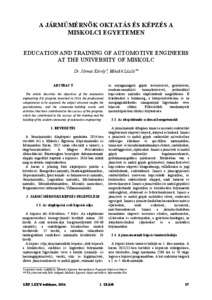 Jármai, Károly and Mihalik, László (2024) A járműmérnök oktatás és képzés a Miskolci Egyetemen. GÉP, 75 (1). pp. 27-30. ISSN 0016-8572