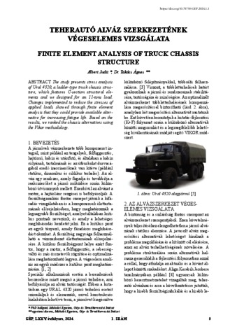 Albert, Judit and Takács, Ágnes (2024) Teherautó alváz szerkezetének végeselemes vizsgálata. GÉP, 75 (1). pp. 5-8. ISSN 0016-8572