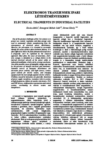 Kovács, Attila and Kovácsné Molnár, Judit and Jármai, Károly (2024) Elektromos tranziensek ipari létesítményekben. GÉP, 75 (2). pp. 28-34. ISSN 0016-8572
