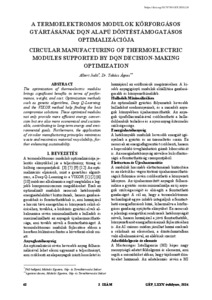 Albert, Judit and Takács, Ágnes (2024) A termoelektromos modulok körforgásos gyártásának DQN alapú döntéstámogatásos optimalizációja. GÉP, 75 (2). pp. 42-47. ISSN 0016-8572