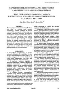 Nagy, Ádám and Bodnár, István and Kovács, Endre (2024) Napelem hőterjedés vizsgálata elektromos paramétereinek a meghatározásához = Heat propagation investigation of a photovoltaic solar panel for determining its electrical features. GÉP, 75 (2). pp. 61-67. ISSN 0016-8572