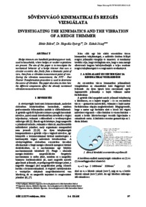 Siktár, Bálint and Kakuk, József and Hegedűs, György (2024) Sövényvágó kinematikai és rezgés vizsgálata = Investigating kinematics and the vibration of the vibration OF A HEDGE TRIMMER. GÉP, 75 (3-4). pp. 97-100. ISSN 0016-8572