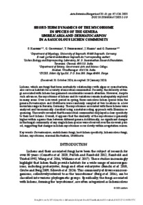 Karthik, S. and Gkoutselis, G. and Steingruber, T. and Harjes, J. and Rambold, G. (2025) Short-Term Dynamics of the Mycobiome in Species of the Genera Umbilicaria and Dermatocarpon in a Saxicolous Lichen Community. ACTA BOTANICA HUNGARICA, 67 (1-3). pp. 97-124. ISSN 0236-6495