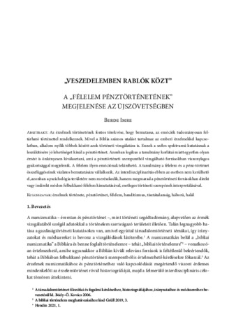Berde, Imre (2024) "Veszedelemben rablók közt". A "félelem pénztörténetének" megjelenése az Újszövetségben. STUDIA BIBLICA - BIBLIAI TANULMÁNYOK, 6 (1). pp. 93-117. ISSN 2676-9166