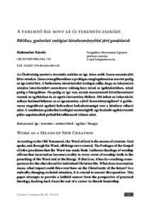 | Uncontrolled Keywords: | Ige / teremtés / emberré létel / egyház / liturgia, Word of God / creation / incarnation / church / liturgy |