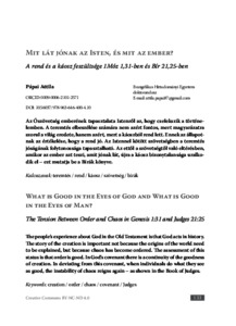 Pápai, Attila (2025) Mit lát jónak az Isten, és mit az ember? : A rend és a káosz feszültsége 1Móz 1,31-ben és Bír 21,25-ben = What is Good in the Eyes of God and What is Good in the Eyes of Man? : The Tension Between Order and Chaos in Genesis 1:31 and Judges 21:25. In: Teológia és teremtés : Mélységek és magasságok : Az Evangélikus Hittudományi Egyetem oktatóinak és doktoranduszainak tanulmánykötete. Teológia és… (2). L’Harmattan Kiadó, Evangélikus Hittudományi Egyetem, Luther Kiadó, Budapest, pp. 133-143. ISBN 978-963-380-297-7 (nyomtatott), 978-963-646-400-4 (elektronikus)
