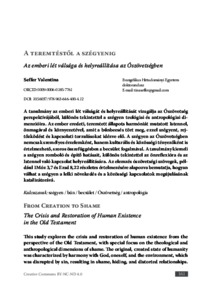 A tanulmány az emberi lét válságát és helyreállítását vizsgálja az Ószövetség perspektívájából, különös tekintettel a szégyen teológiai és antropológiai dimenzióira. Az ember eredeti, teremtett állapota harmóniát mutatott Istennel, önmagával és környezetével, amit a bűnbeesés tört meg, ezzel szégyent, rejtőzködést és kapcsolati torzulásokat idézve elő. A szégyen az Ószövetségben nemcsak személyes érzelemként, hanem kulturális és közösségi tényezőként is értelmezhető, szoros összefüggésben a becsület fogalmával. A tanulmány kiemeli a szégyen romboló és építő hatásait, különös tekintettel az önreflexióra és az Istennel való kapcsolat helyreállítására. Az elemzés ószövetségi szövegek, például 1Móz 3,7 és Ezsd 8,22 részletes értelmezésére alapozva bemutatja, hogyan válhat a szégyen a lelki növekedés és a közösségi kapcsolatok megújulásának katalizátorává. | This study explores the crisis and restoration of human existence from the perspective of the Old Testament, with special focus on the theological and anthropological dimensions of shame. The original, created state of humanity was characterized by harmony with God, oneself, and the environment, which was disrupted by sin, resulting in shame, hiding, and distorted relationships. In the Old Testament, shame is understood not only as a personal emotion but also as a cultural and communal factor, closely linked to the concept of honor. The study highlights both the destructive and constructive effects of shame, particularly in terms of self-reflection and the restoration of relationship with God. Based on detailed interpretations of Old Testament texts such as Genesis 3:7 and Ezra 8:22, the paper demonstrates how shame can act as a catalyst for spiritual growth and the renewal of communal ties.