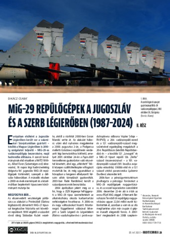 Dikácz, Csaba (2025) MIG-29 repülőgépek a jugoszláv és a szerb légierőben (1987-2024) : II. rész. HADITECHNIKA, 59 (1). pp. 23-26. ISSN 0230-6891