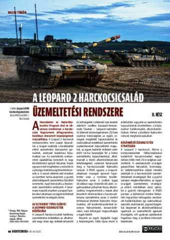 A Honvédelmi és Haderőfejlesztési Program első és látványos eredménye a harckocsizó fegyvernem átfegyverzése, korábban elvesztett képességeinek visszaállítása. A Leopard 2 harckocsik rendszeresítése nem csupán típusváltás: a nyugati eszközök a korábbiaktól eltérő üzemeltetési környezetet igényelnek, amelynek kialakítása folyamatban van. Az üzemeltetés rendszerénekújjáalakítása bonyolult és nagy körültekintést igénylő folyamat, hiszen egyszerre kell megfelelnie a műveleti és a pénzügyi hatékonyság követelményeinek is. A szerző cikkének első részében az üzemben tartás alapelveit, a gyártó által kidolgozott üzemeltetési filozófiát ismertette, majd bemutatta a Bundeswehr üzemeltetési rendszerét. A tanulmány második részében a Leopard harckocsikat alkalmazó országok különböző üzemeltetési stratégiáit elemzi.