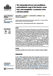 Fendel, Johannes C. and Bürkle, Johannes J. and Schmidt, Stefan (2025) The relationship between trait mindfulness and problematic usage of the internet, screen time, and nomophobia: A systematic review and meta-analysis. JOURNAL OF BEHAVIORAL ADDICTIONS, 14 (2). pp. 590-610. ISSN 2062-5871