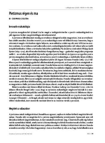 Csepregi, Zoltán (2025) Pietizmus régen és ma. LELKIPÁSZTOR, 100 (8-9). pp. 493-496. ISSN 0133-2821