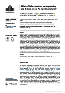Ó Ceallaigh, Diarmaid and Timmons, Shane and Robertson, Deirdre A. and Lunn, Peter D. (2025) Effects of inducements on sports gambling and decision-errors: An experimental study. JOURNAL OF BEHAVIORAL ADDICTIONS, 14 (2). pp. 959-971. ISSN 2062-5871