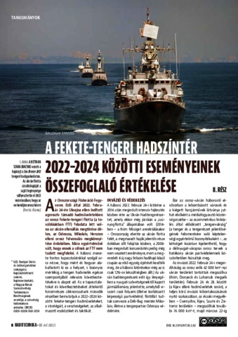 Balogh, Tamás (2025) A Fekete-tengeri hadszíntér 2022-2024 közötti eseményeinek összefoglaló értékelése : 2. rész. HADITECHNIKA, 59 (2). pp. 8-15. ISSN 0230-6891