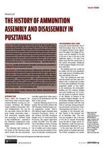 The author is pursuing his doctoral research on the topic of possible ways of handling surplus ammunition stocks unsuitable for military use. One of these handling methods is the disassembly of ammunition, which is currently being carried out at the Pusztavacs base of the Hungarian Defence Forces Material Supply Storebase, Ammunition Technical Subdepartment. The present study briefly reviews the history of this organi-zational element in order to fill in some gaps. The author guides the reader from the ar-duous beginnings to the present, touching on significant milestones. The article focuses specifically on the history of ammunition (dis)assembly activities, so the other tasks of the Pusztavacs base are not, or – in the case of the laboratory – only briefly mentioned. | A szerző doktori kutatásait a hadihasználatra alkalmatlan, felesleges lőszerkészletek lehetséges kezelési módjainak témakörében folytatja. Az egyik ilyen ke-zelési módszer a lőszerek szétszerelése, amely tevékenység jelenleg is folyik a Magyar Honvédség Anyagellátó Raktárbázis pusztavacsi bázisán, a Lőszertechnikai Alosztálynál. A tanulmányban – némileg hiánypótlásként – ennek a szervezeti elemnek a történetét tekinthetjük át nagyon röviden. A szerző végigvezeti az olvasót a fáradságos kezdetek-től a jelenig, érintve a jelentős mérföldköveket. Az írás kifejezetten a lőszerszerelési tevé-kenység históriájára koncentrál, tehát a pusztavacsi bázis egyéb feladatait nem, vagy – a laboratórium esetében – csak felvillantásképpen említi.
