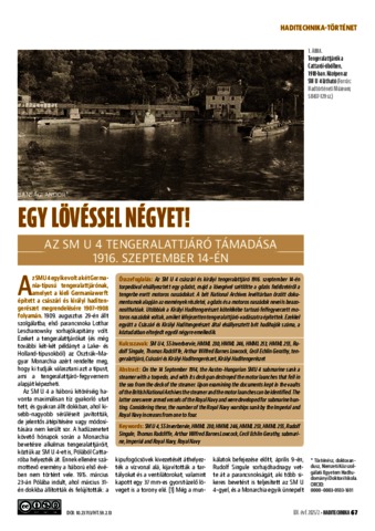Bánsági, Andor (2025) Egy lövéssel négyet! : Az SM U 4 tengeralattjáró támadása 1916. szeptember 14-én. HADITECHNIKA, 59 (2). pp. 67-70. ISSN 0230-6891