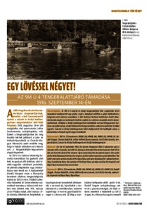 Az SM U 4 császári és királyi tengeralattjáró 1916. szeptember 14-én torpedóval elsüllyesztett egy gőzöst, majd a lövegével szétlőtte a gőzös fedélzetéről a tengerbe esett motoros naszádokat. A brit National Archives levéltárban őrzött dokumentumok alapján az események részletei, a gőzös és a motoros naszádok nevei is beazonosíthatóak. Utóbbiak a Királyi Haditengerészet kötelékébe tartozó felfegyverzett motoros naszádok voltak, amiket kifejezetten tengeralattjáró-vadászatra építettek. Ezekkel együtt a Császári és Királyi Haditengerészet által elsüllyesztett brit hadihajók száma, a köztudatban elterjedt egyről négyre emelkedik. | On the 14 September 1914, the Austro-Hungarian SMU 4 submarine sank a steamer with a torpedo, and with its deck gun destroyed the motor launches that fell in the sea from the deck of the steamer. Upon examining the documents kept in the vaults of the British National Archives the steamer and the motor launches can be identified. The latter ones were armed vessels of the Royal Navy and were developed for submarine hun-ting. Considering these, the number of the Royal Navy warships sunk by the Imperial and Royal Navy increases from one to four.